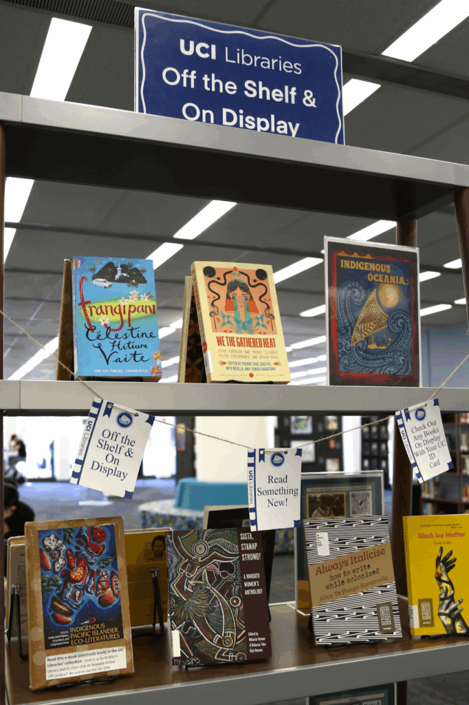 UCI Libraries Indigenous Oceania book display. Photo Credit: Kathy Tran