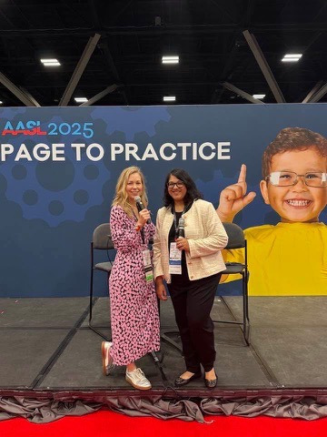 The spirit of collaboration at AASL extended beyond my scheduled session. I was honored to step in last-minute for author Deborah Rinio to join Maura Madigan, a colleague from my school district, on the Page to Practice Stage for their interactive interview, “Beyond Books: Real Talk on Active Learning in Elementary Spaces.” With Maura, we engaged the audience in a dynamic discussion drawn from her and Deborah’s books in the AASL Standards-Based Learning Series. We shared practical strategies for leveraging learning centers, project-based learning, and short, impactful STEAM activities to foster curiosity and collaboration in the elementary library. It was a perfect, extemporaneous extension of my own work, demonstrating the conference’s culture of sharing and professional support.